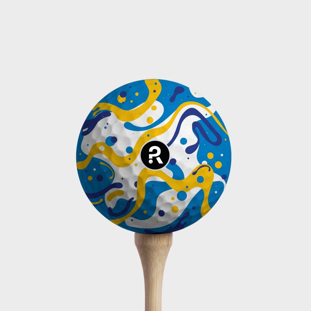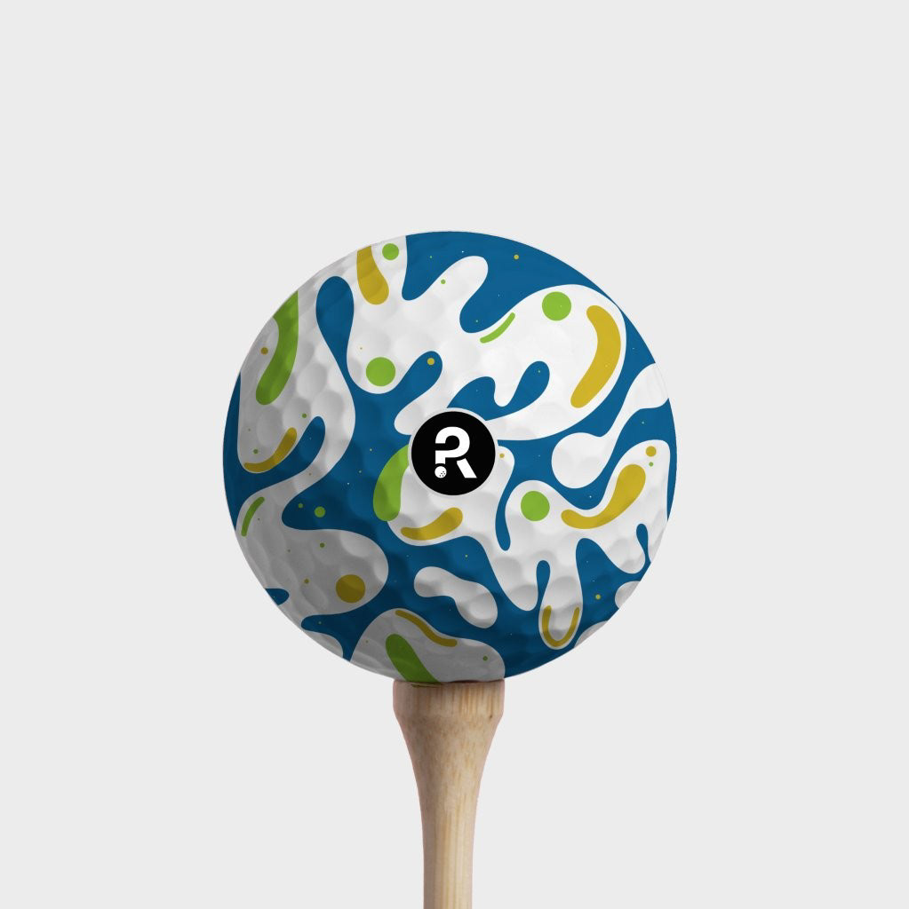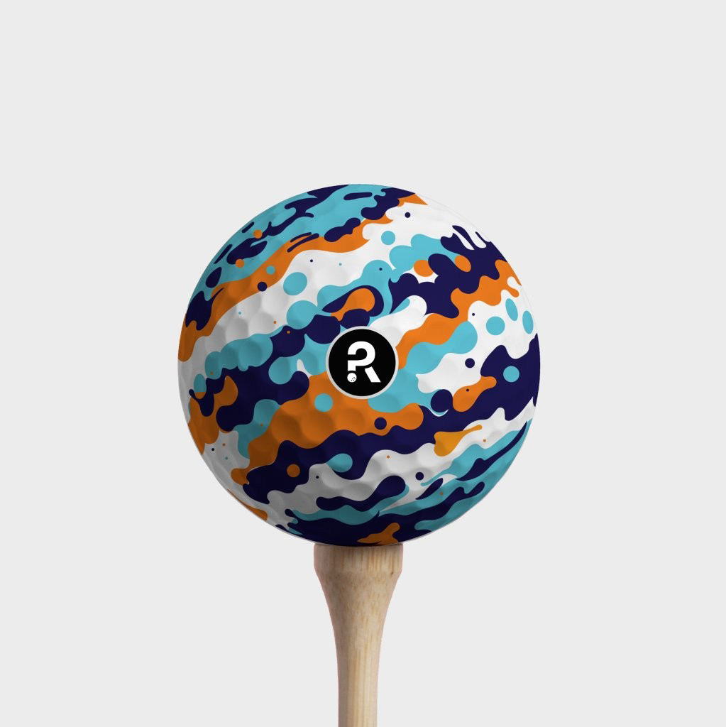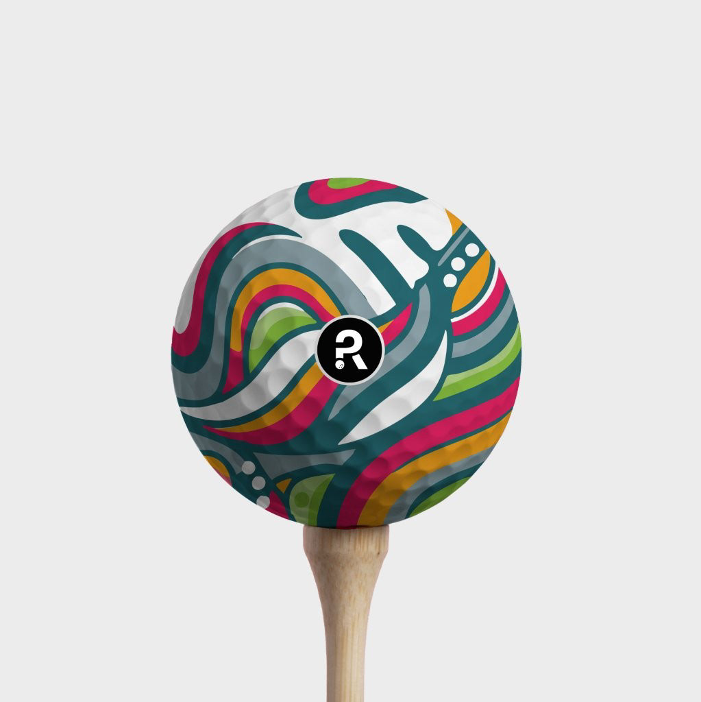 A series of colorful, abstract golf ball designs featuring different rarities, using unique, detailed patterns to give each ball a distinct identity and showcase advanced digital design skills.