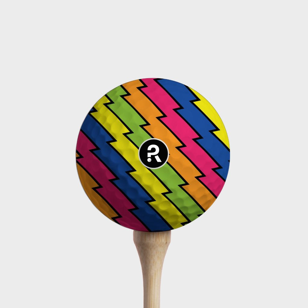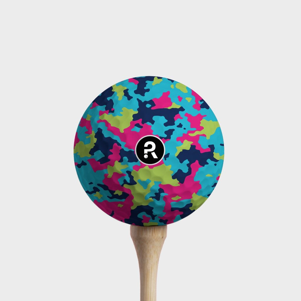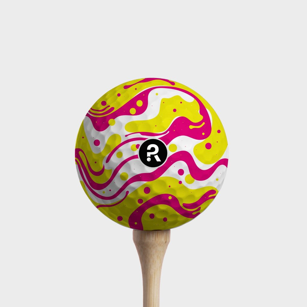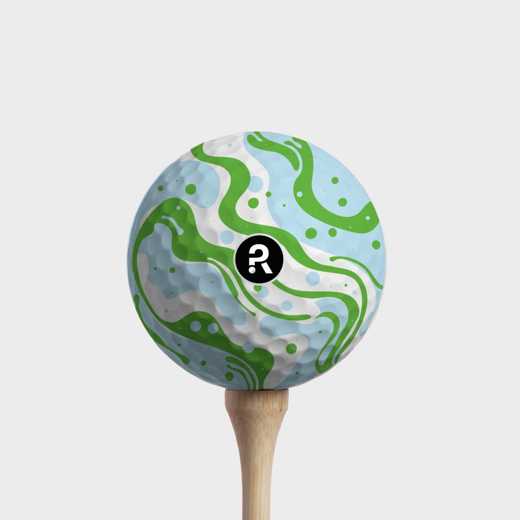 A series of colorful, abstract golf ball designs featuring different rarities, using unique, detailed patterns to give each ball a distinct identity and showcase advanced digital design skills.