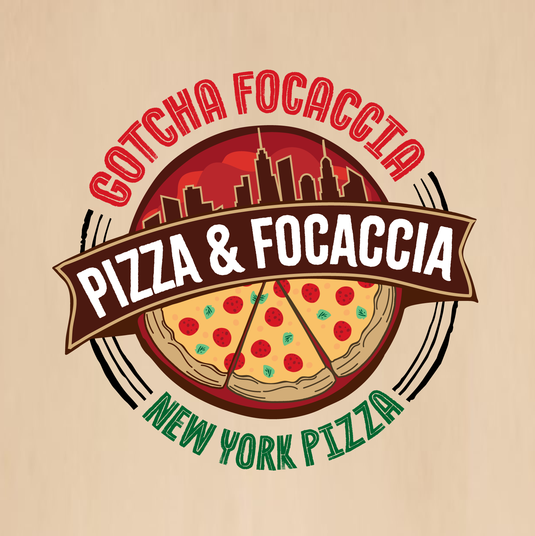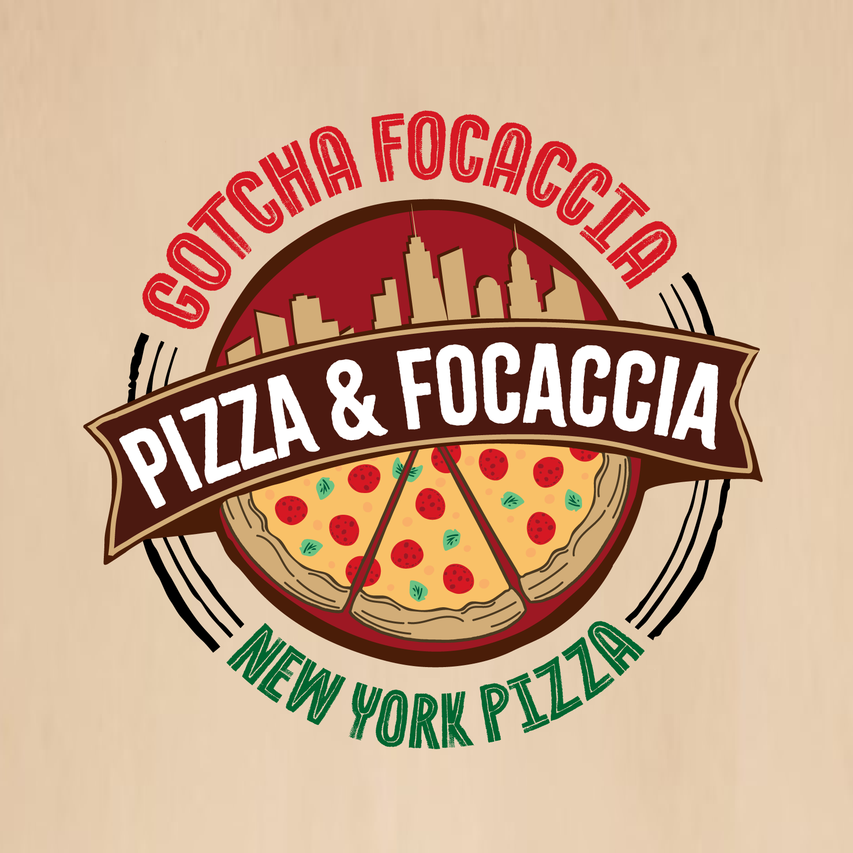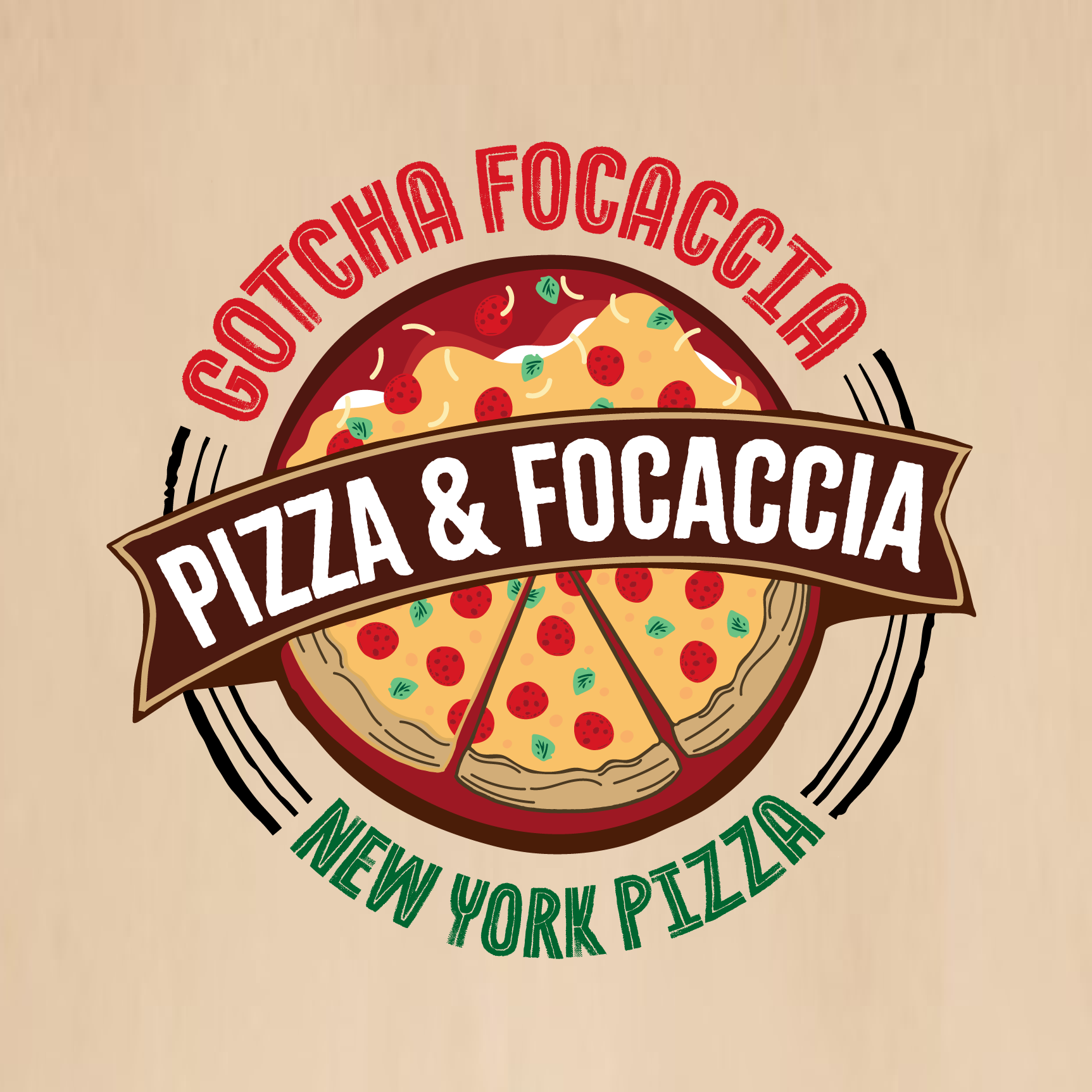 An emblem logo design for a pizza and focaccia place located in Brooklyn, NY.