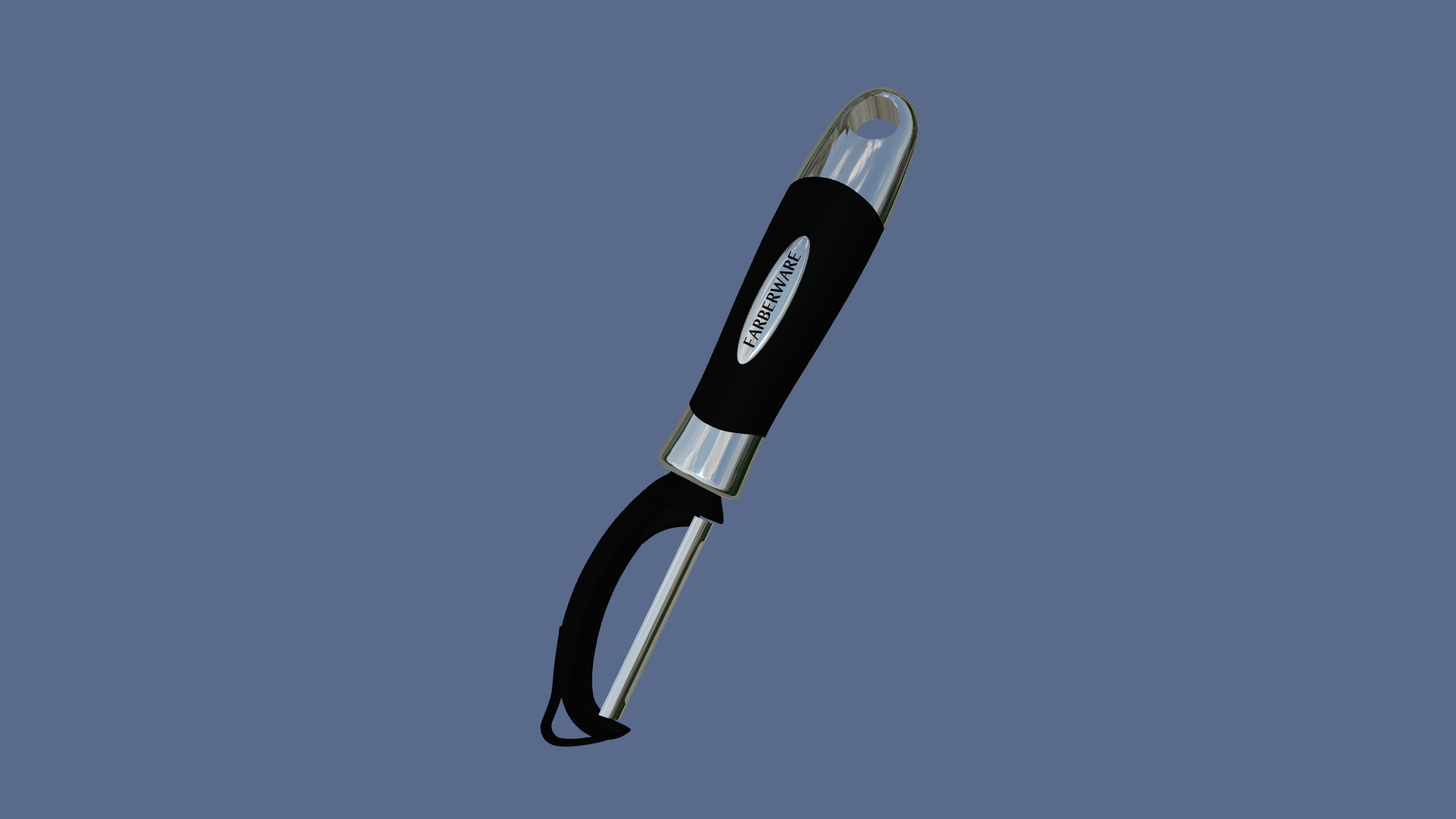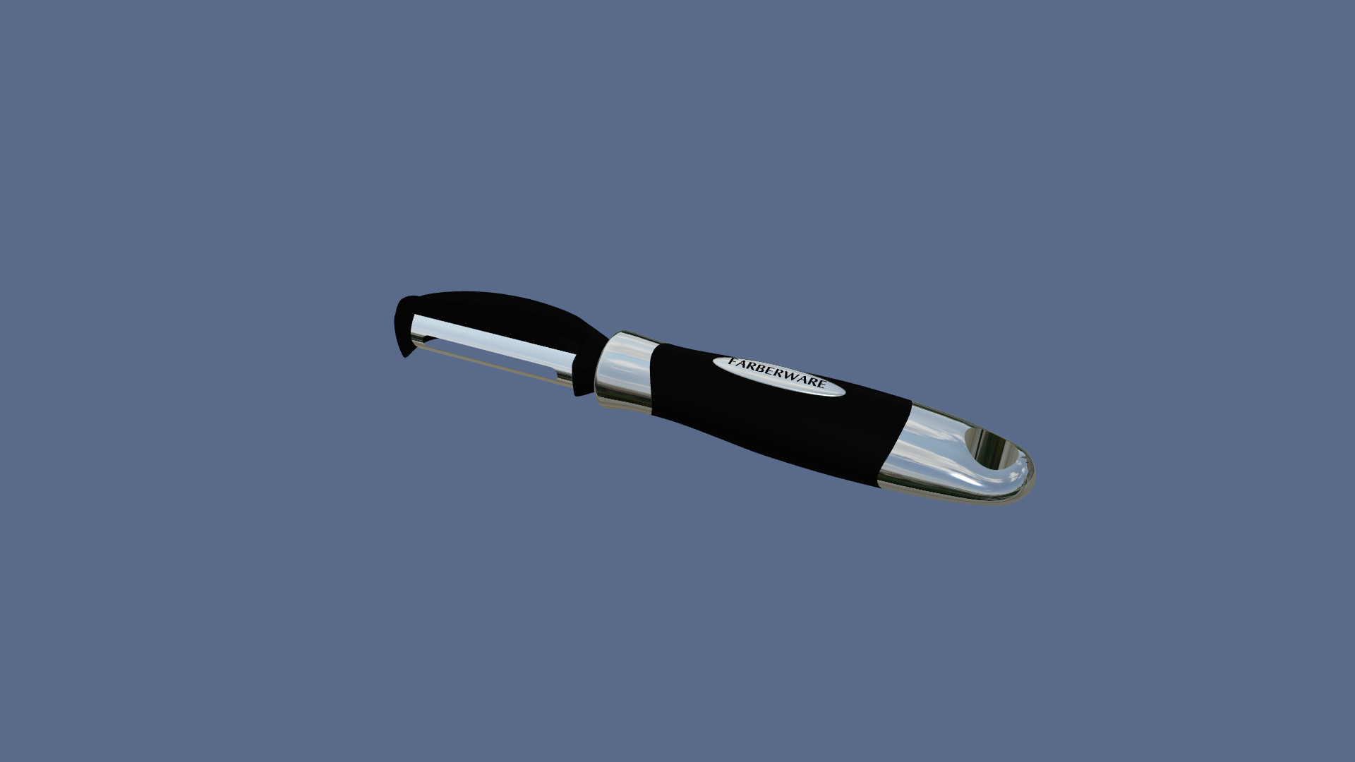 A 3D Rendering of a Farberware kitchen peeler that was precisely measured and modeled to exact scale.