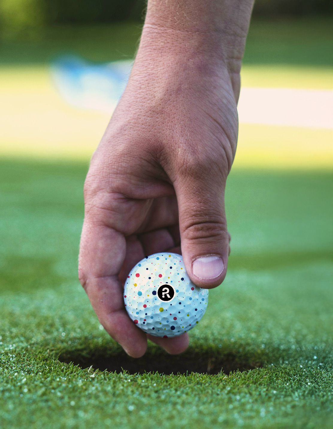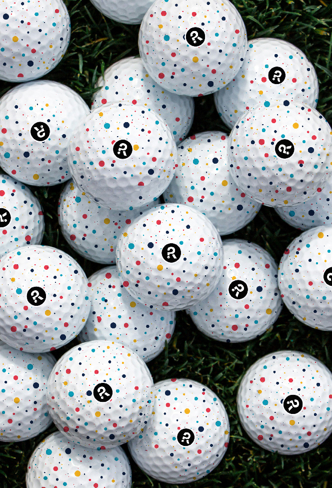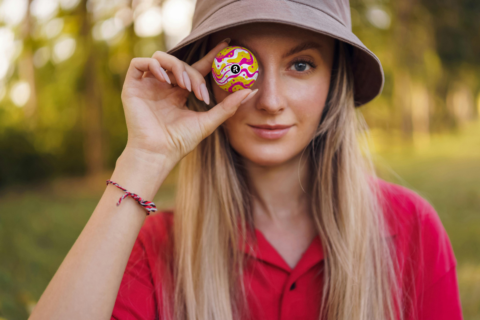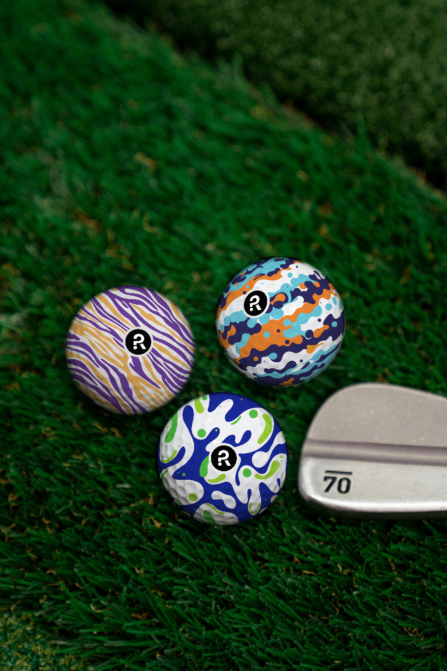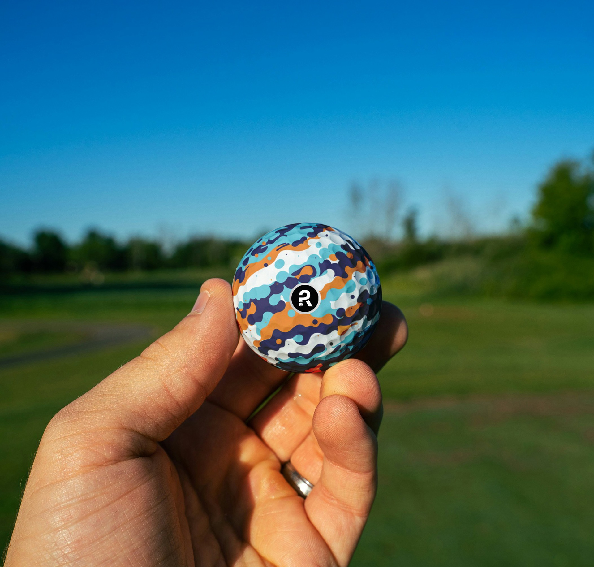 A collection of edited stock photos using Rareshot designs to showcase the colorful balls in real-world settings, creating a polished, aspirational brand look.