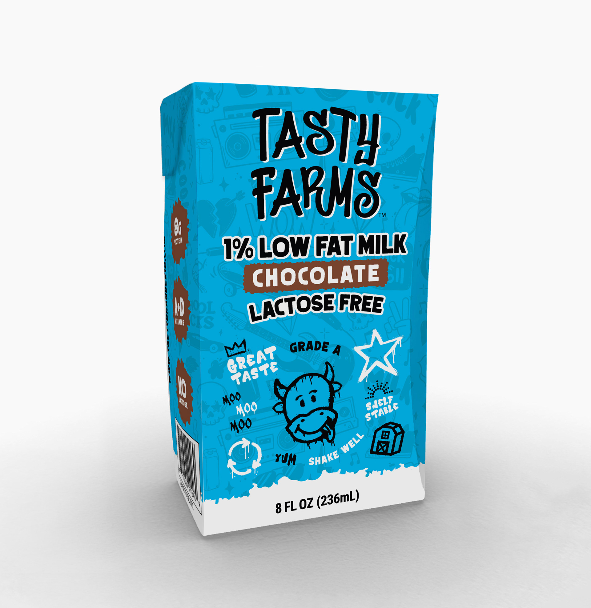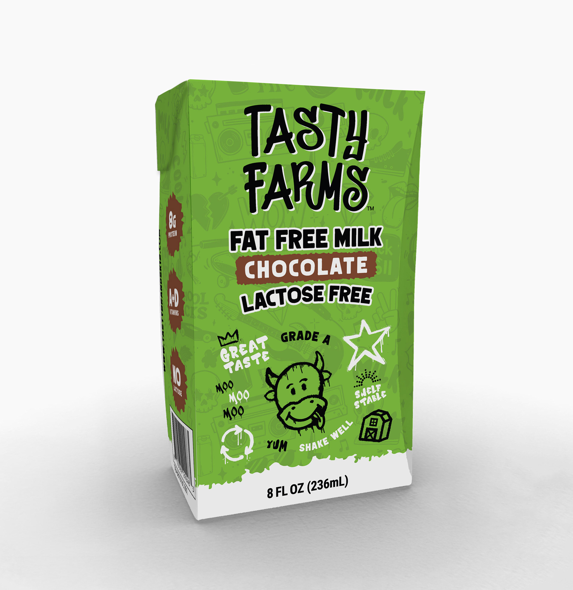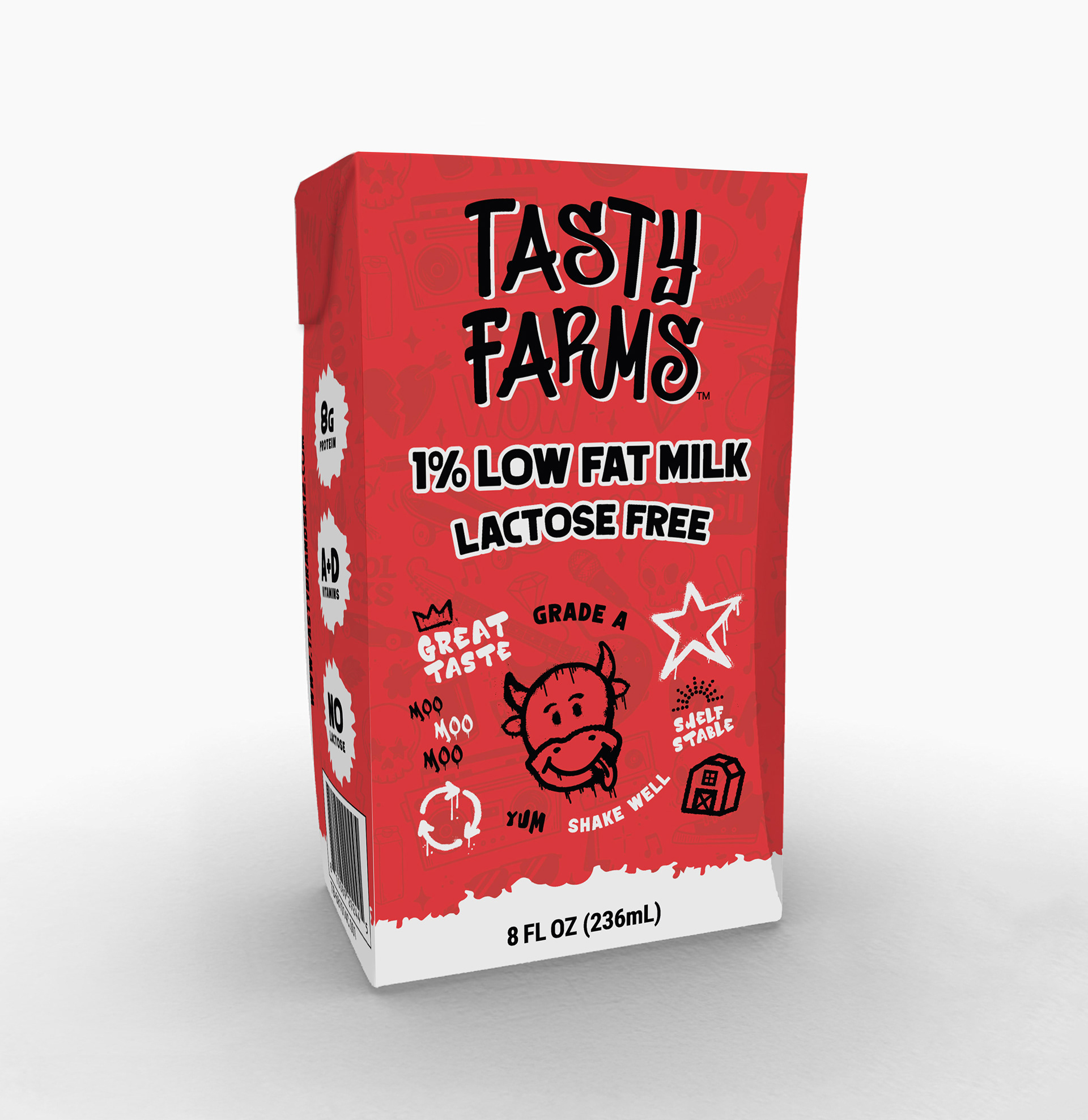 A packaging design for a new dairy brand, creating a fun, edgy look for a line of shelf-stable milk with bold colors and distinctive typography. Worked with Tetra Pak and California Dairies Inc to ensure shelf impact while meeting regulatory standards.
